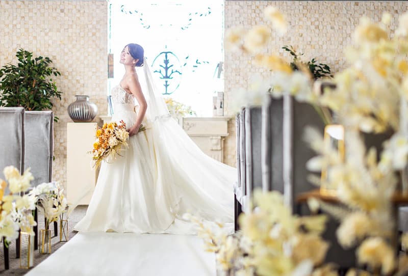 マリエールの大聖堂に栄えるドレスをご提案します!ドレスのみならず和装も豊富にご用意♪館内のガーデンでの前撮りは口コミでも人気です。当日はカタログやipadで衣装のご紹介をさせて頂きます