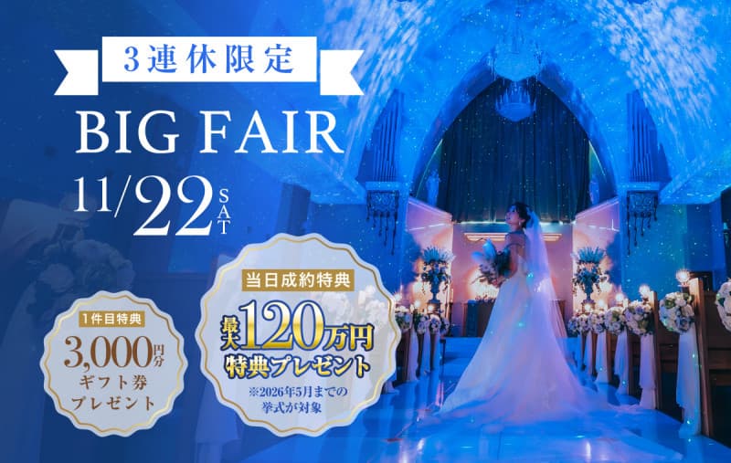毎週さまざまなブライダルフェアを開催しておりますので、ブライダルフェアのページにてご確認くださいませ。